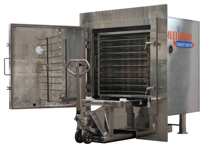For Multispray cabinet dryers application in GMP conditions, highly efficient system of automatic cleaning CIP (Clean In Place) was developed. The effectiveness of washing for the dryers with fixed shelves is 98%, and for models with extractable shelves - 100%.